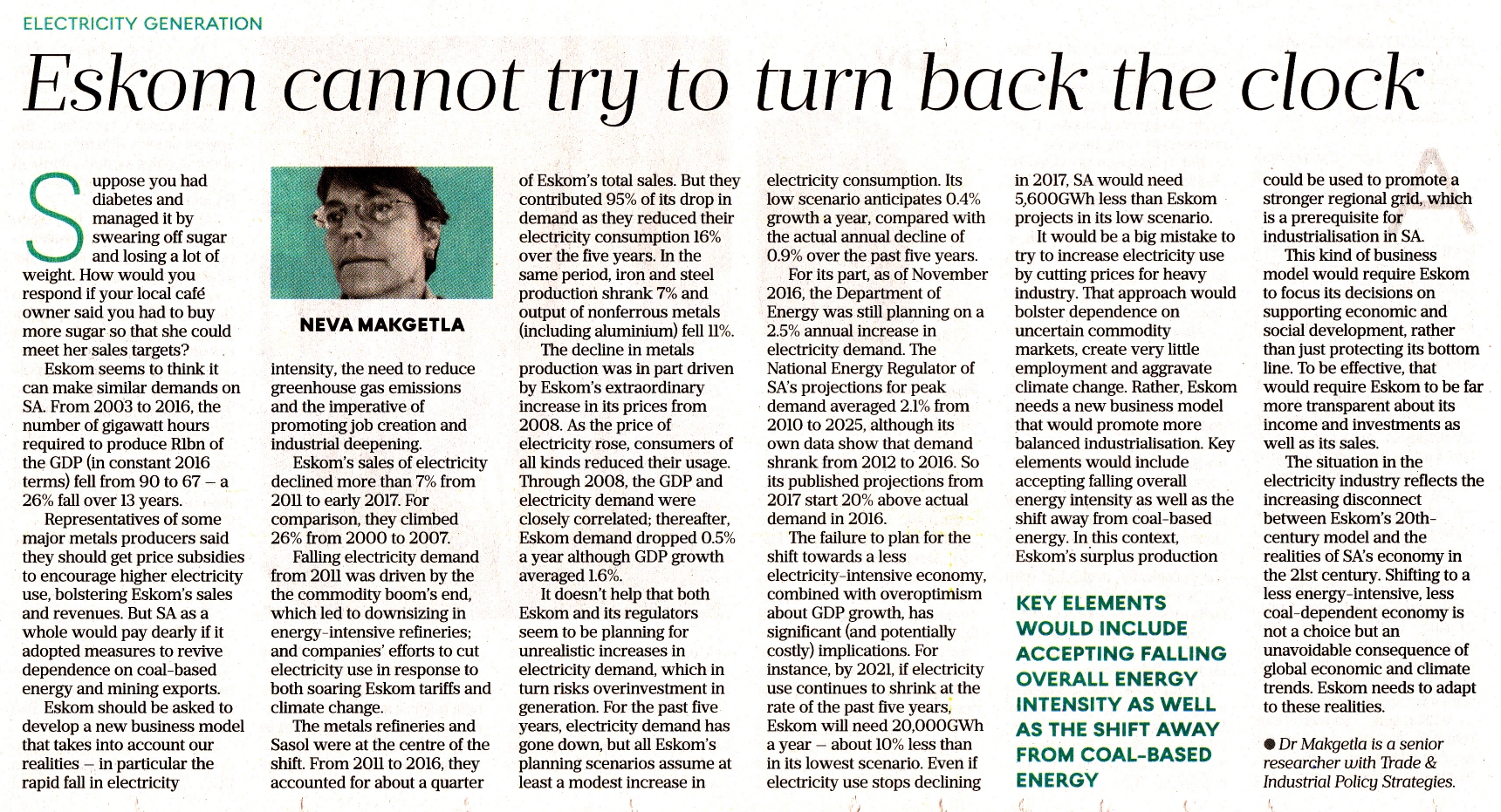 Business Day - 15 August 2017 by Neva Makgetla (TIPS Senior Economist)