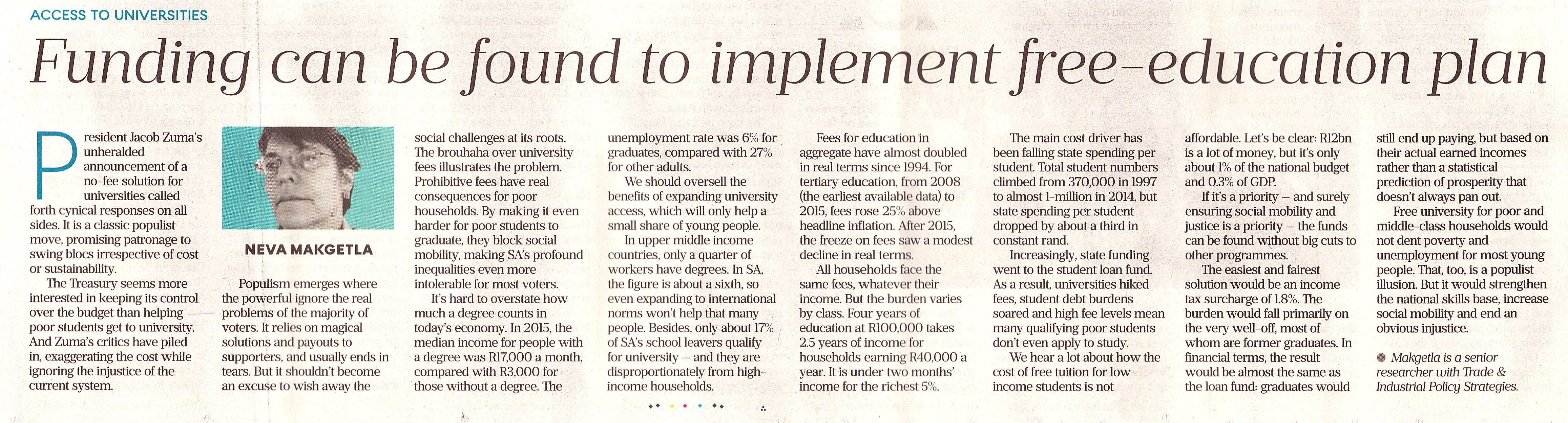 Business Day - 5 December 2017 by Neva Makgetla (TIPS Senior Economist)