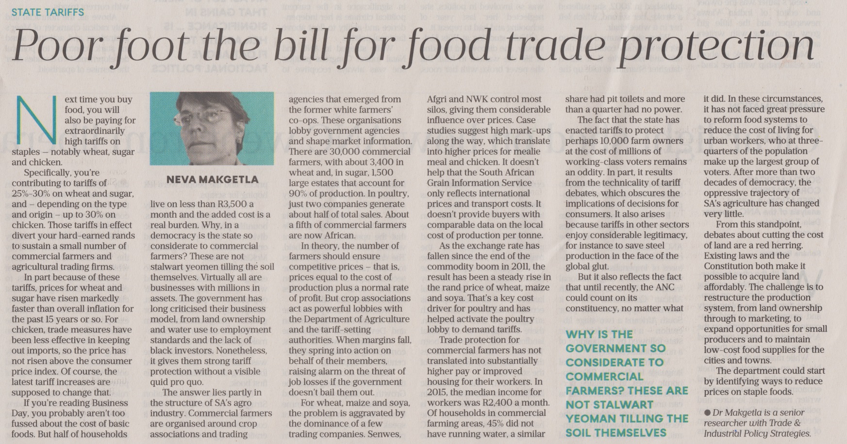 Letter in Business Day - 11 May 2017: Makgetla is wrong about food prices and tariff formulation