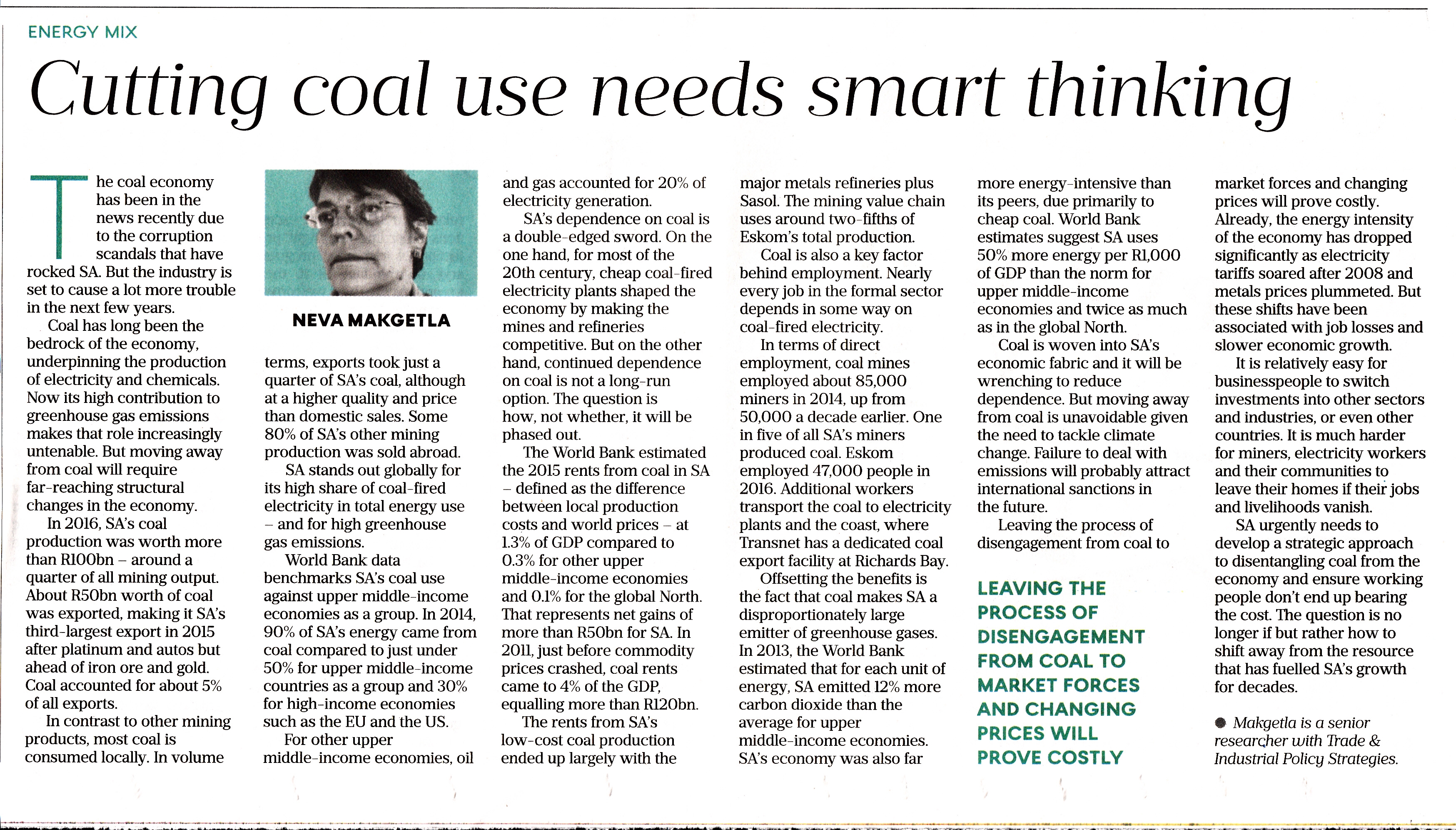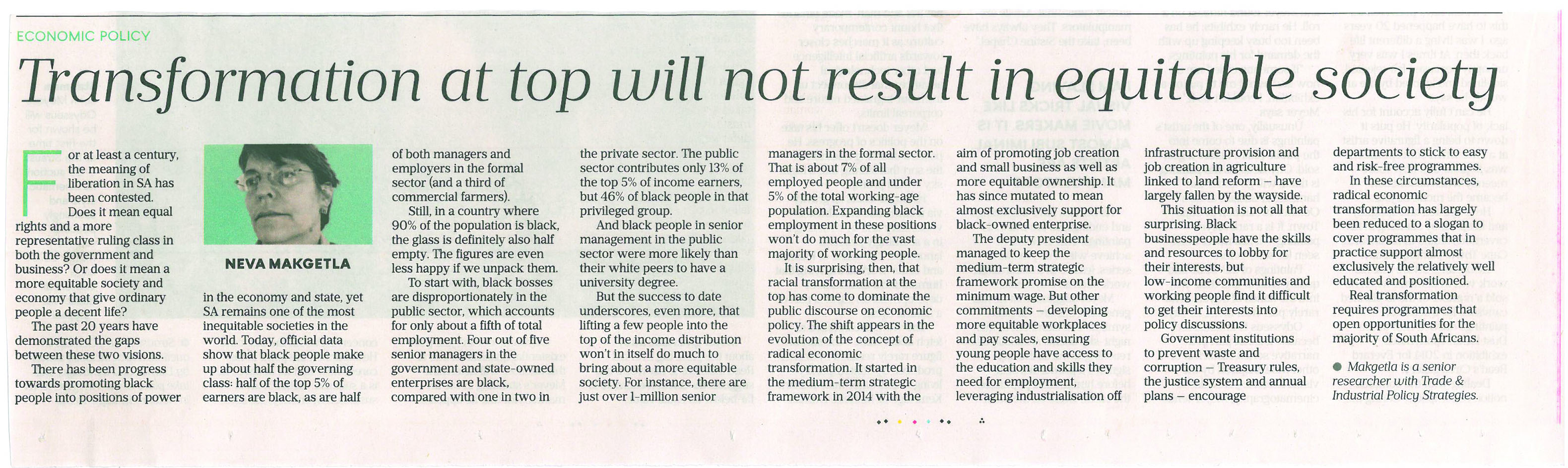 Business Day - 30 January 2018 by Neva Makgetla (TIPS Senior Economist)