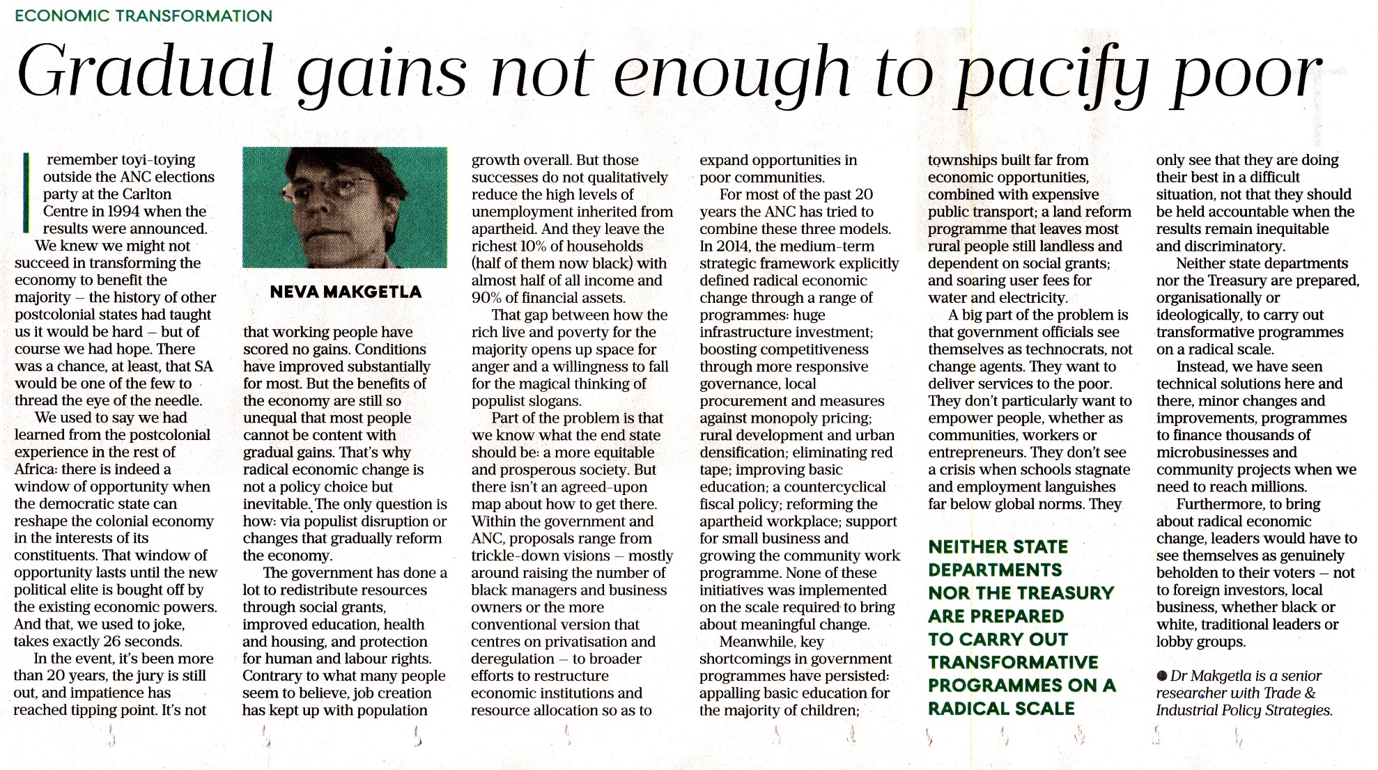 Independent Media - 15 April 2017 by Neva Makgetla (TIPS Senior Economist)