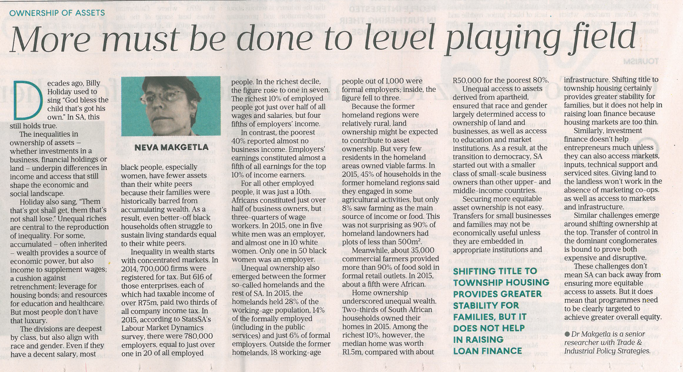 Business Day - 28 March 2017 by Neva Makgetla (TIPS Senior Economist)